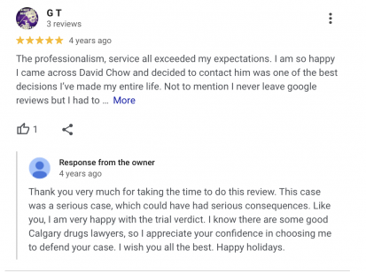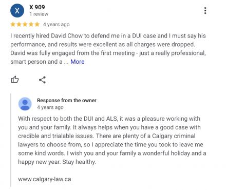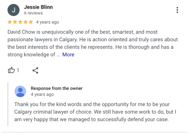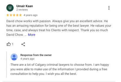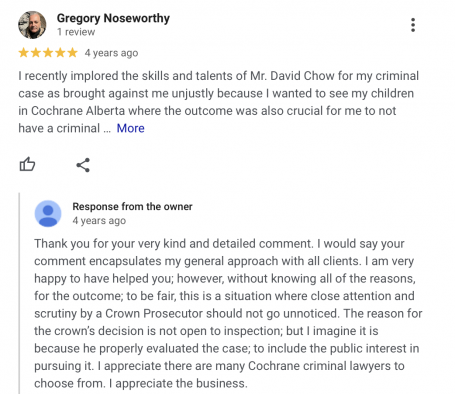 "I recently implored the skill and talents of Mr. David Chow for my criminal case as brought against me unjustly because I wanted to see my children in Cochrane, Alberta where the outcome was also crucial for me to not have a criminal record".